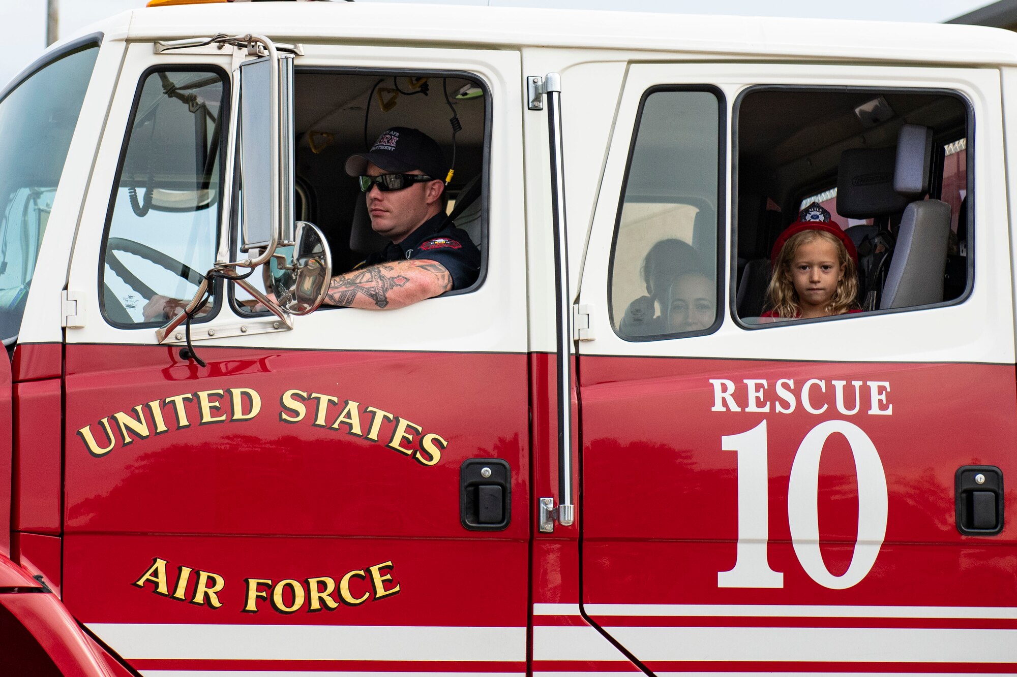 ALTUS AIR FORCE BASE, Okla. -- For Fire Prevention Week this year, the 97th Civil Engineer Squadron ended its festivities with a parade through base housing and an open house at the Fire Station, Sept. 28, at Altus Air Force Base, Okla. Fire Prevention Week is held annually to promote fire safety through interactive activities and demonstrations. The 2019 theme is “Not Every Hero Wears a Cape – Plan and Practice Your Escape!” which recognizes the everyday people who motivate their households to develop and practice a fire escape plan. Throughout the week, the 97th CES hosted many events that supported and educated the 97th Air Mobility Wing about the importance of fire safety. Some of these events included a bowling tournament, visit to the CDC, live fire demonstrations, friendly squadron competitions and a fire muster. The week’s festivities concluded with the Fire Department parading through base housing in their trucks, later opening the Fire Station up to everyone for an open house. All of these events educate Airmen and their families about the importance of fire prevention, keeping Mobility’s Hometown safe and prepared.